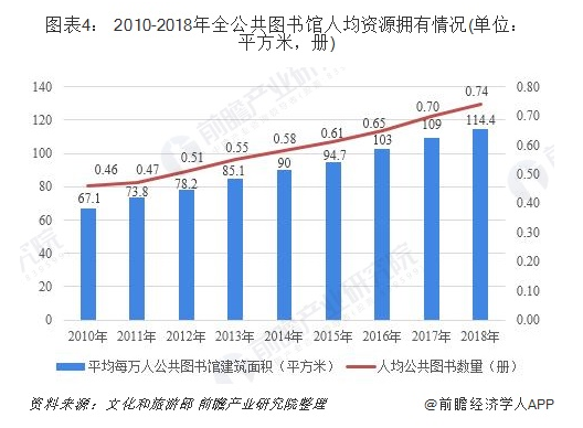2018年末全國平(píng)均每萬人公共圖書館建築麵積114.4平方米,比上年末增加(jiā)5.4平方米;全國人(rén)均圖書藏量0.74冊,比上年(nián)末增加0.04冊;全年全國人均購書費1.77元,比上年末增加0.07元。