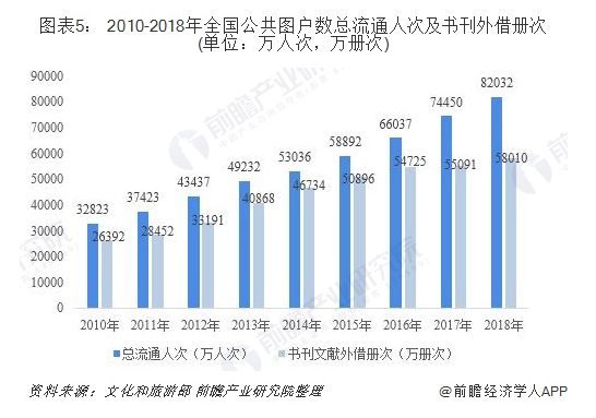 全年全國公共圖書(shū)館發放借書證7263萬個(gè),比(bǐ)上年(nián)增長7.8%;總流通人次82032萬,增長10.2%。書刊文獻外借冊次58010萬,比上年(nián)增長5.3%;外借人次25814萬,比上(shàng)年增長1.2%。全年共為讀者舉辦(bàn)各種活動179043次,比上年(nián)增長15.1%;參加人次10648萬,比上年增長20.2%。