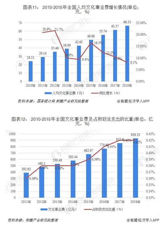 2018年全國文化事業費928.33億元,比上年增加72.53億(yì)元,增(zēng)長8.5%;全國人均文化事業費66.53元,比上(shàng)年增加(jiā)4.96元,增長8.1%。文化事業費占財政總支出的比重為0.42%,比重和上年(nián)持平。